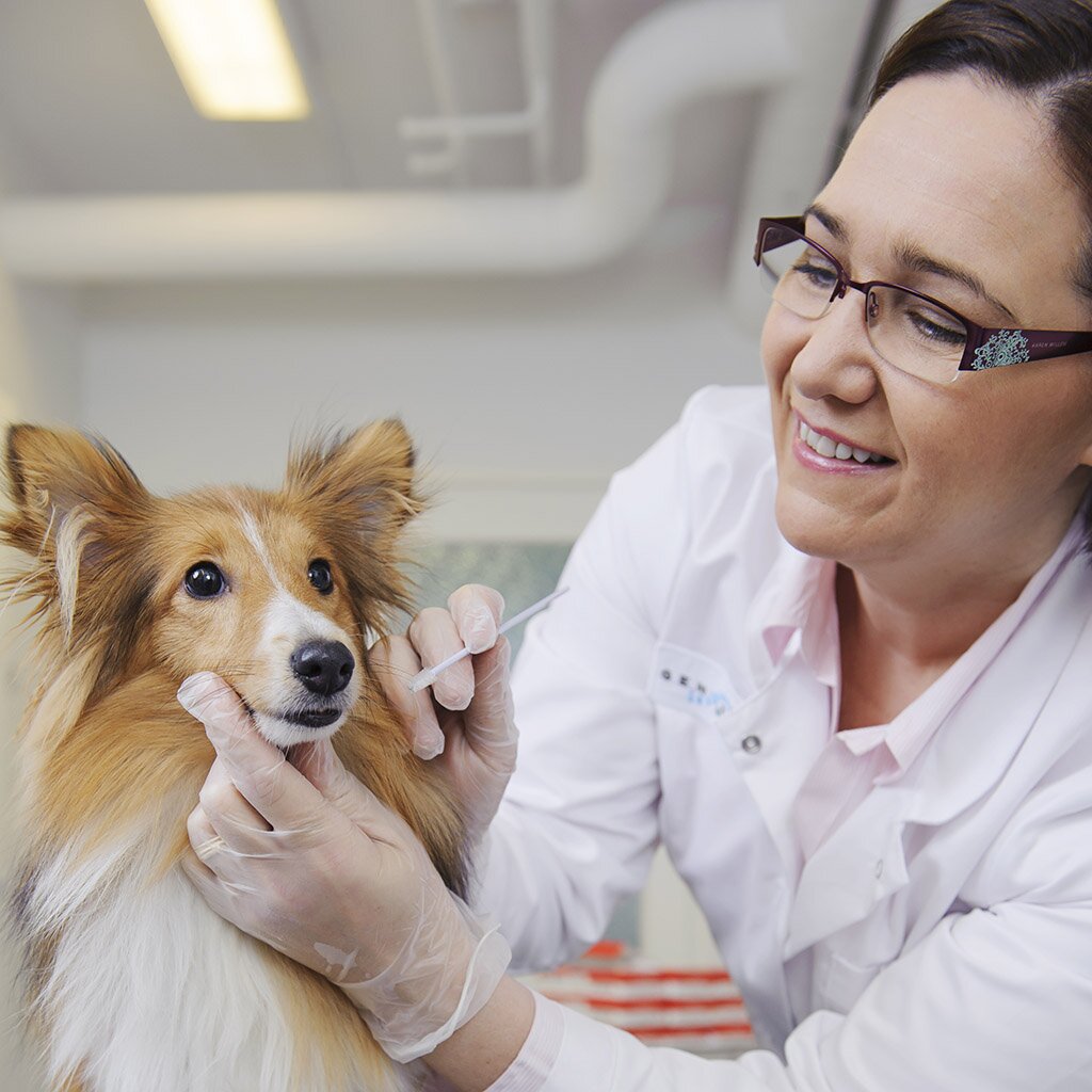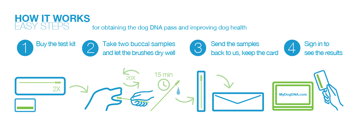 Either a buccal (cheek) swab sample or a blood sample is needed for dog and other animal DNA tests.