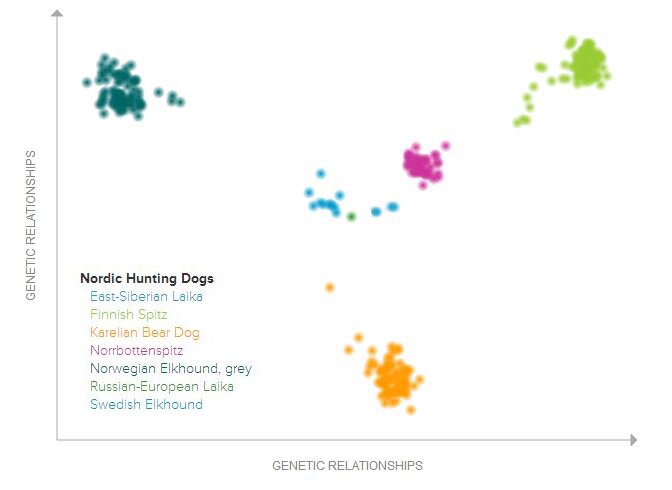 Graph 2 indicates how smilar or different the Nordic Hunting Dog breeds are genetically.
